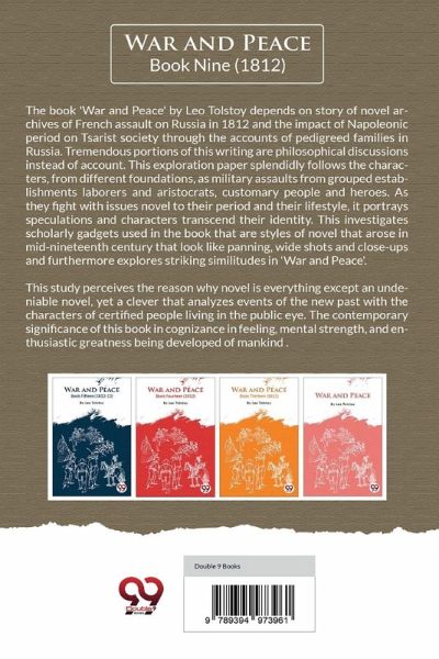 The book 'War and Peace' by Leo Tolstoy depends on story of novel archives of French assault on Russia in 1812 and the impact of Napoleonic period on Tsarist society through the accounts of pedigreed families in Russia.Tremendous portions of this writing are philosophical discussions instead of account. This exploration paper splendidly follows the characters, from different foundations, as military assaults from grouped establishments laborers and aristocrats, customary people and heroes. As they fight with issues novel to their period and their lifestyle, it portrays speculations and characters transcend their identity. This investigates scholarly gadgets used in the book that are styles of novel that arose in mid-nineteenth century that look like panning, wide shots and close-ups and furthermore explores striking similitudes in 'War and Peace'. This study perceives the reason why novel is everything except an undeniable novel, yet a clever that analyzes events of the new past with the characters of certified people living in the public eye. The contemporary significance of this book in cognizance in feeling, mental strength, and enthusiastic greatness being developed of mankind .