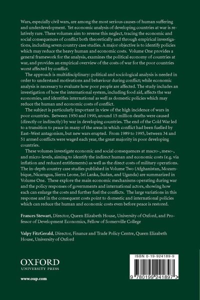 Wars, especially civil wars, are among the most serious causes of human suffering and underdevelopment. Yet economic analysis of developing countries at war is relatively rare. These volumes aim to reverse this neglect, tracing the economic and social consequences of conflict both theoretically and through empirical investigations, including seven country case studies. A major objective is to identify policies which may reduce the heavy human and economic costs. Volume One provides a general framework for the analysis, examines the political economy of countries at war, and provides an empirical overview of the costs of war for the poor countries worst affected by conflict. The approach is multidisciplinary: political and sociological analysis is needed in order to understand motivations and behaviour during conflict; while economic analysis is necessary to evaluate how poor people are affected. The analysis includes an investigation of how the international system, including food aid, affects the war economies, and identifies international as well as domestic policies which may reduce the human and economic costs of conflict. The subject is particularly important in view of the high incidence of wars in poor countries. Between 1950 and 1990, around 15 million deaths were caused (directly or indirectly) by war in developing countries. The end of the Cold War led to a transition to peace in many of the areas in which conflict had been fuelled by East-West antagonism, but new wars erupted. From 1989 to 1995, between 34 and 51 armed conflicts were waged each year, the great majority in poor developing countries. These volumes investigate economic and social consequences at macro-, meso- and micro- levels, aiming to identify the indirect costs (e.g. via inflation and reduced entitlements) as well as direct costs of military operations. The in-depth country case studies published in Volume Two (Afghanistan, Mozambique, Nicaragua, Sierra Leone, Sri Lanka, Sudan and Uganda) are summarized in Volume One. These explore the main economic mechanisms operating during war and the policy responses of governments and international actors, showing how each can enlarge the costs and further fuel the conflicts. The large variations in this response and in the consequent costs point to domestic and international policies which can reduce the human and economic costs even before peace is restored.