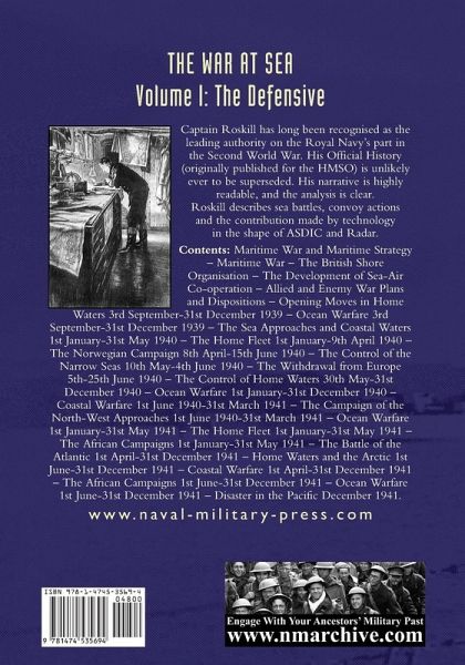 Captain Roskill has long been recognised as the leading authority on the Royal Navy's part in the Second World War. His Official History (originally published for the HMSO) is unlikely ever to be superseded. His narrative is highly readable, and the analysis is clear. Roskill describes sea battles, convoy actions and the contribution made by technology in the shape of ASDIC and Radar. Contents: Maritime War and Maritime Strategy - Maritime War - The British Shore Organisation - The Development of Sea-Air Co-operation - Allied and Enemy War Plans and Dispositions - Opening Moves in Home Waters 3rd September-31st December 1939 - Ocean Warfare 3rd September-31st December 1939 - The Sea Approaches and Coastal Waters 1st January-31st May 1940 - The Home Fleet 1st January-9th April 1940 -The Norwegian Campaign 8th April-15th June 1940 - The Control of the Narrow Seas 10th May-4th June 1940 - The Withdrawal from Europe 5th-25th June 1940 - The Control of Home Waters 30th May-31st December 1940 - Ocean Warfare 1st January-31st December 1940 - Coastal Warfare 1st June 1940-31st March 1941 - The Campaign of the North-West Approaches 1st June 1940-31st March 1941 - Ocean Warfare 1st January-31st May 1941 - The Home Fleet 1st January-31st May 1941 - The African Campaigns 1st January-31st May 1941 - The Battle of the Atlantic 1st April-31st December 1941 - Home Waters and the Arctic 1st June-31st December 1941 - Coastal Warfare 1st April-31st December 1941 - The African Campaigns 1st June-31st December 1941 - Ocean Warfare 1st June-31st December 1941 - Disaster in the Pacific December 1941.