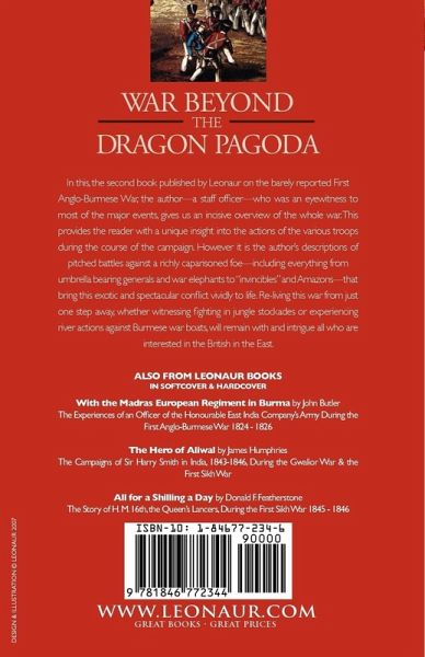 In this, the second book published by Leonaur on the barely reported First Anglo-Burmese War, the author-a staff officer-who was an eyewitness to most of the major events, gives us an incisive overview of the whole war. This provides the reader with a unique insight into the actions of the various troops during the course of the campaign. However it is the author's descriptions of pitched battles against a richly caparisoned foe-including everything from umbrella bearing generals and war elephants to "invincibles" and Amazons-that bring this exotic and spectacular conflict vividly to life. Re-living this war from just one step away, whether witnessing fighting in jungle stockades or experiencing river actions against Burmese war boats, will remain with and intrigue all who are interested in the British in the East.