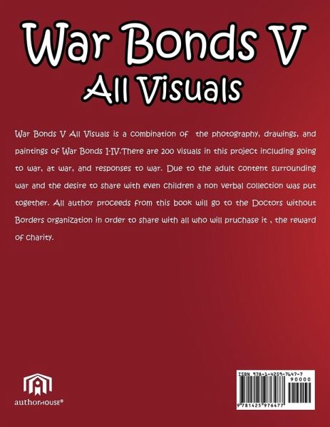 War Bonds V All Visuals is a combination of the photography, drawings, and paintings of War Bonds I-IV.There are 200 visuals in this project including going to war, at war, and responses to war. Due to the adult content surrounding war and the desire to share with even children a non verbal collection was put together. All author proceeds from this book will go to the Doctors without Borders organization in order to share with all who will pruchase it , the reward of charity.
