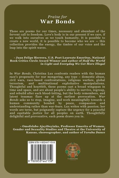 War Bonds is a book of poems about survival in the face of conflict, from Iraq and Afghanistan, to #BlackLivesMatter, the war in Ambazonia and Cameroon, and gang violence in California's Central Valley. The book jumps back in time 100 years to the archive of a Chicago pianist and painter, Edna Cookingham, who worked with the YMCA in France to entertain the troops at the end of WWI. Her letters, telegrams, diary, photographs, and war papers serve as source material for these poems. While Europe may have experienced demobilization and a peace process in 1919, the echoes of that conflict continue…mehr