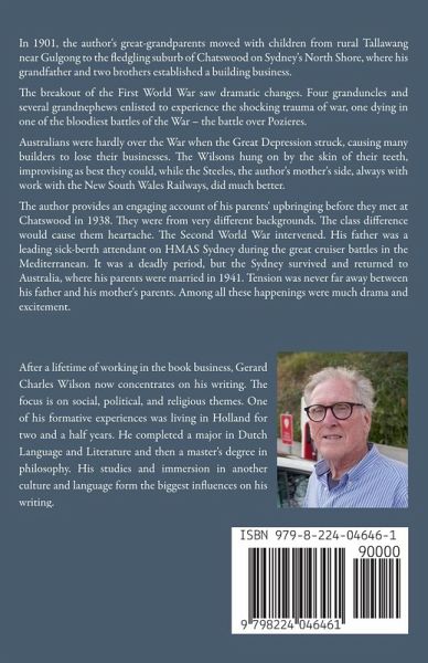 A history of Australia, not of the famous and heroic, but of the small people, the anonymous people who were the heartbeat of a growing nation. The second book of the Social History Series. In 1901, the author's great-grandparents, James Patrick and Mary Jane Wilson, moved from rural Tallawang near Gulgong to the fledgling suburb of Chatswood on Sydney's North Shore. Accompanying them were Bert (the author's grandfather), Bert's sister Elizabeth and his younger brother Leo. Older brother Percy followed later. Bert, Percy and older brother Tom began a business, building houses from Chatswood through to Hornsby on Sydney's northern border. The breakout of the First World War saw dramatic changes. Rowland Wilson, Bert's nephew, enlisted only to be engaged shortly after his arrival in France in one of the bloodiest battles of the War - the battle over Pozieres. His remains are mingled with the mud and dirt of Pozieres' farmlands. Leo, Rowland's uncle, followed a year later. The author gives an account of their terrible experiences. On the author's mother's side, it was his grandfather Steele's brother, Percy Steele, who endured the same frightening ordeal, carrying a lifelong war wound. Australians were hardly over the War when the Depression struck, causing many builders to lose their businesses. The Wilsons hung on by the skin of their teeth, improvising as best they could, while the Steeles, always with work with the New South Wales Railways in clerical positions, did much better. The author provides an engaging account of his parents' upbringing before they met at Chatswood in 1938. They were from very different backgrounds. The class difference would cause them heartache. The Second World War intervened. His father was a leading sick berth attendant on HMAS SYDNEY during the great cruiser battles in the Mediterranean. It was a deadly period, but the SYDNEY survived and returned to Australia where his parents were married in 1941. Tension was never far away between his father and his mother's parents. Among all these happenings were much drama and excitement. The book ends with the author's father building their first house at Lane Cove, a suburb adjacent to Chatswood. Book 3, ME AND PETE, covering the author's early childhood, was released in 2020.