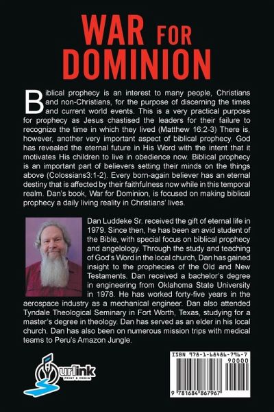 Biblical prophecy is an interest to many people, Christians and non-Christians, for the purpose of discerning the times and current world events. This is a very practical purpose for prophecy as Jesus chastised the leaders for their failure to recognize the time in which they lived (Matthew 16:2-3) There is, however, another very important aspect of biblical prophecy. God has revealed the eternal future in His Word with the intent that it motivates His children to live in obedience now. Biblical prophecy is an important part of believers setting their minds on the things above (Colossians3:1-2). Every born-again believer has an eternal destiny that is affected by their faithfulness now while in this temporal realm. Dan's book, War for Dominion, is focused on making biblical prophecy a daily living reality in Christians' lives.