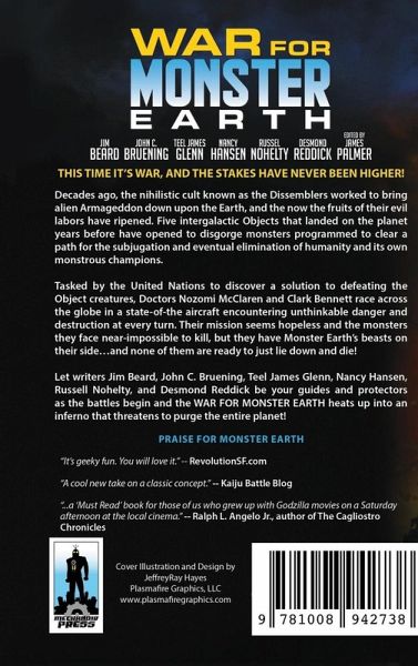 THIS TIME IT'S WAR, AND THE STAKES HAVE NEVER BEEN HIGHER! Decades ago, the nihilistic cult known as the Dissemblers worked to bring alien Armageddon down upon the EArth, and now the fruits of their evil labors have ripened. Five intergalactic Objects that landed on the planet years before have opened to disgorge giant monsters programmed to clear a path for the subjugation and eventual elimination of humanity and its own monstrous champions. Tasked by the United Nations to discover a solution to defeating the Object creatures, Doctors Nozomi McClaren and Clark Bennett race across the globe in a state-of-the-art aircraft, encountering unthinkable danger and destruction at every turn. Their mission seems hopeless and the monsters they face near-impossible to kill, but they have Monster Earth's beasts on their side...and none of them are ready to just lie down and die! Let writers Jim Beard, John C. Bruening, Teel James Glenn, Nancy Hansen, Russell Nohelty, and Desmond Reddick be your guides and protectors as the battles begin and the WAR FOR MONSTER EARTH becomes an inferno that threatens to purge the entire planet!