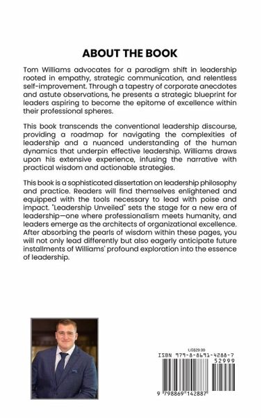 War Forged Leadership: Being The Leader Everyone Wants To Follow A game-changer in the realm of leadership guides. Experience the paradigm shift in leadership ideologies! Transforming Leaders, Empowering Teams No matter your leadership challenges, War Forged Leadership provides a powerful blueprint for becoming a more effective leader. Tom Williams, an authority figure on leadership, unearths real-world strategies that can help you hone your leadership skills, develop empathy, and lead with confidence and impact. If you're struggling with ineffective leadership, the problem isn't you. The problem is inadequate leadership training that often overlooks the human side of leadership. Such training results in low team morale, reduced productivity, and dissatisfaction in the workplace. You aren't bound to be the leader you are today. Change is possible with the right guidance. Here, you'll gain invaluable insights that can iteratively shape you into a leader admired by your team and peers. Williams is renowned for his ability to simplify complex leadership concepts into practical strategies that are easily understood and applied by professionals across industries. In this transformative book, he leverages his extensive leadership experiences and research-backed ideas to create a comprehensive leadership guide that effectively bridges the gap between theory and practice. Learn how to:Lead with empathy and effectiveness Boost team morale and productivity Incorporate vision into actionable strategies Handle leadership challenges with intellect and resilience And much more War Forged Leadership will revolutionize how you view and exercise leadership, equipping you with strategies and insights you need to become a more effective and empathetic leader - whether you are a CEO hoping to boost morale, a team leader eager to inspire, or simply a professional seeking to better understand and practice empathetic leadership.