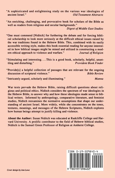 Texts about war pervade the Hebrew Bible, raising challenging questions in religious and political ethics. Among the most disquieting war passages are those in which God demands the total annihilation of the enemy without regard to gender, age, or military status. The ideology of the "ban", however, is only one among a range of attitudes towards war preserved in the ancient Israelite literary tradition. Applying insights from anthropology, comparative literature, and feminist studies, Niditch considers a wide spectrum of war ideologies in the Hebrew Bible, seeking in each case to discover why and how these views might have made sense to biblical writers, who themselves can be seen to wrestle with the ethics of violence. Niditch thus challenges the stereotype of the violent "Old" Testament - of law versus gospel, justice versus mercy, and judgment versus love. To understand attitudes about war in the Hebrew Bible, Niditch argues, is to understand war in general: the motivations, justifications, and rationalizations of those who wage it. In addition, this exploration reveals much about the social and cultural history of Israel, as war texts are found to map the world views of biblical writers from various periods and settings. Reviewing ways in which modern scholars have interpreted this controversial material, Niditch sheds further light on the normative assumptions that shape our understanding of ancient Israel. More widely, this work explores how human beings attempt to justify killing and violence. Niditch's unique study will be of particular interest to students of Judaism, the Bible, and religion, as well as ethicists and historians concerned with relating classical sources tocontemporary issues.