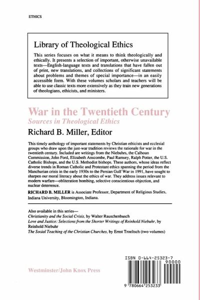 A timely anthology by Christian ethicists and ecclesial groups who are concerned with the justice of war in the 20th century. Seeking to sharpen our moral literacy about the ethics of war, Pope Pius XII, the Niebuhrs, and U.S. Catholic and Methodist bishops address ethical issues relevant to modern warfare--obliteration bombing, selective conscientious objection, and nuclear deterrence.