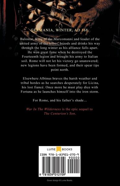 Germania, winter, AD 168. Balomar, King of the Marcomanni and leader of the united army of the tribes, broods and drinks his way through the long winter as his alliance falls apart. He won great fame when he destroyed the Fourteenth legion and brought his army to Italian soil. Rome will not let his victory go unanswered; new legions have been formed, and their spear tips point north. Elsewhere Albinus braves the harsh weather and tribal hordes as he searches desperately for Licina, his lost fiancé. Once more he must play dice with Fortuna as he launches himself into the iron storm. For Rome, and his father's shade... War In The Wilderness: The epic sequel to The Centurion's Son.
