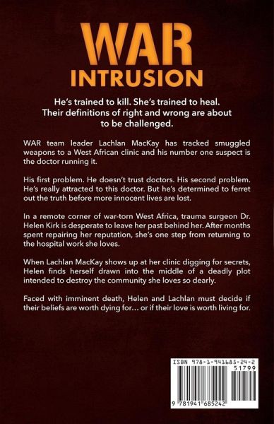 He's trained to kill. She's trained to heal. Their definitions of right and wrong are about to be challenged. WAR team leader Lachlan MacKay has tracked smuggled weapons to a West African clinic and his number one suspect is the doctor running it. His first problem. He doesn't trust doctors. His second problem. He's really attracted to this doctor. But he's determined to ferret out the truth before more innocent lives are lost. In a remote corner of war-torn West Africa, trauma surgeon Dr. Helen Kirk is desperate to leave her past behind her. After months spent repairing her reputation, she's one step from returning to the hospital work she loves. When Lachlan MacKay shows up at her clinic digging for secrets, Helen finds herself drawn into the middle of a deadly plot intended to destroy the community she loves so dearly. Faced with imminent death, Helen and Lachlan must decide if their beliefs are worth dying for... or if their love is worth living for. If you like dark, gritty, edge-of-your-seat action, strong heroes and heroines who are pushed to their physical and moral limits, and an international setting, then you'll love the second book in Vanessa Kier's romantic thriller series, WAR. ¿Get WAR: Intrusion now to start the adventure!