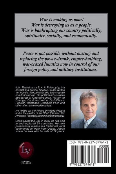 Every war the U.S. has fought since World War II was a war of choice. None of them were necessary. They represent a colossal waste of money and human lives. The U.S. has had no real adversary since the collapse of the Soviet Union in 1992. Yet, over the last thirty-two years, it has spent over $17 trillion on its military, fighting conflicts it didn't need to fight, buying military junk it didn't need, building hundreds of bases around the world which only serve to create animosity and chaos. Now the U.S. government is over $34 trillion in debt. The American public likewise is awash in debt, to the tune of $18 trillion. The message of this book is simply this . . . War is making us poor! War is destroying us as a people. War is bankrupting our country politically, spiritually, socially, and economically. Peace is not possible without ousting and replacing the power-drunk, empire-building, war-crazed lunatics now in control of our foreign policy and military institutions.