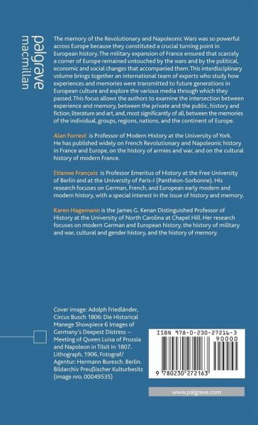 "This fine addition to a splendid book series opens important new perspectives on the ways the wars of the French Revolution and Napoleon have been remembered and commemorated in European culture. Ranging across genres from memoirs to novels to the visual arts and material culture, the essays collected here add significantly to our understanding of the wars' impact, and form a fascinating counterpart to the literature on war memories and culture in the twentieth century." - David A. Bell, Princeton University, USA
