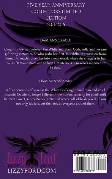 Collector's edition available for a limited time in celebration of the five year anniversary of the launch of the War of Gods series. Includes: "Damian's Oracle" and "Damian's Assassin" Damian's Oracle. Caught in the war between the White and Black Gods, Sofia and her rare gift bring victory to he who grabs her first. Her difficult transition from human to oracle forces her into a new world, where she struggles in her role as Damian's mate and to help a mysterious man who's supposed to be dead. Damian's Assassin. After thousands of years as the White God's right hand man and chief assassin, Dustin no longer believes in the human capacity for good, until he meets sweet, sunny Bianca, a Natural whose gift of healing will change not only his fate, but the fates of everyone around them.
