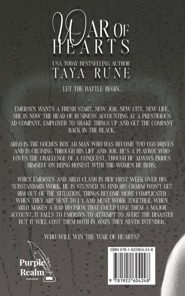 Let the battle begin. Emersyn wants a fresh start. New job. New city. New life. She is now the head of business accounting at a prestigious ad company, employed to shake things up and get the company back in the black. Arlo is the golden boy ad man who has become too ego driven and is cruising through his life and job. He's a playboy who loves the challenge of a conquest, though he always prides himself on being honest with the women he beds. When Emersyn and Arlo clash in her first week over his substandard work, he is stunned to find his charm won't get him out of the situation. Things become more complicated when they are sent to LA and must work together. When Arlo makes a bad decision that could lose them a major account, it falls to Emersyn to attempt to avert the disaster but it will cost them both in ways they never intended. Who will win the war of hearts?