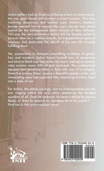 Achim Jeffers had no illusions of being a hero or some savior. He was again faced with another a covert mission. This one, involving dangerous and lawless cops. Achim's shadowy bosses needed him to expose the cop's secrets and obtain justice for the beleaguered black citizens of New Orleans. This was the very profession Achim left his Sunday pulpit to pursue. Now as a ruthless hitman, he enjoyed these types of missions and dedicated the rebirth of his new life towards fulfilling them. Yet, somewhere in between unearthing evidence of greed, lies, and murders, Achim found himself torn. A mysterious and elusive black cop had stolen his heart, making an already risky mission more difficult and confused. The professional assassin had somehow fallen in love with one of his targets, Detective Jessica Baker. Jessica's beautiful golden smile, and intoxicating eyes had captured him, launching Achim's heart into a state of war. For Achim, the stakes are high, and he must somehow win the war waging within his soul while answering the hardest question of all. Does he embrace his heart's desire for Jessica Baker, or does he quench his righteous thirst for justice? Find out in this action-packed novel.