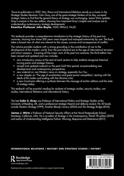 'Since it was first published in 2007 War, Peace and International Relations: An Introduction to Strategic History has been a classic and distinctive text in the Strategic Studies literature. Professor Gray, one of the great strategic thinkers of his day, argued that strategic history indicated that the future of warfare was likely to be very much like the past and that the general theory of strategy was unchanging. He also argued that great power rivalry was likely to re-emerge in the future. Following his premature death, Professor Wirtz has done a great service to students and practitioners of strategy by bringing Gray's analysis up to date in this new edition showing how important Gray's insights and analysis are to the understanding of the contemporary war in Ukraine and the growing geopolitical tensions in relations between the West and the developing 'unlimited' strategic alliance between Russia and China. Professor Wirtz is to be congratulated. This is a great testimony to the enduring value of the writings of Colin S. Gray.'