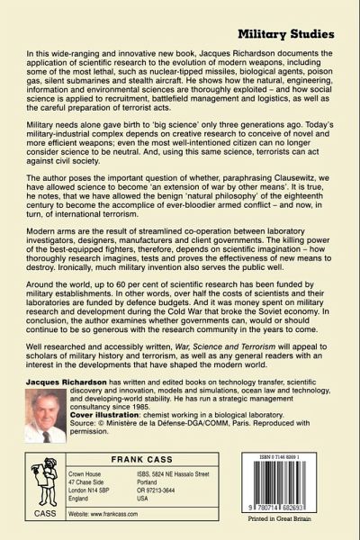Describes the application of research to the evolution of weapons. It shows how natural, engineering, information and environmental sciences are exploited how even social science is applied to recruitment, battlefield and logistical management, and careful preparation of terroristic acts.