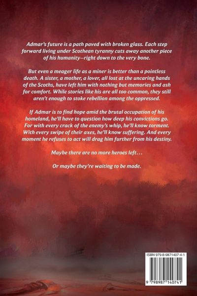 Admar's future is a path paved with broken glass. Each step forward living under Scothean tyranny cuts away another piece of his humanity-right down to the very bone. But even a meager life as a miner is better than a pointless death. A sister, a mother, a lover, all lost at the uncaring hands of the Scoths, have left him with nothing but memories and ash for comfort. While stories like his are all too common, they still aren't enough to stoke rebellion among the oppressed. If Admar is to find hope amid the brutal occupation of his homeland, he'll have to question how deep his convictions go. For with every crack of the enemy's whip, he'll know torment. With every swipe of their axes, he'll know suffering. And every moment he refuses to act will drag him further from his destiny. Maybe there are no more heroes left. Or maybe they're waiting to be made.