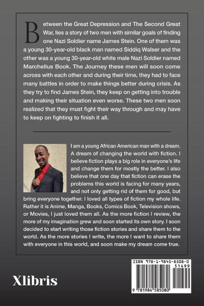 Between the Great Depression and The Second Great War, lies a story of two men with similar goals of finding one Nazi Soldier name James Stein. One of them was a young 30-year-old black man named Siddiq Walser and the other was a young 30-year-old white male Nazi Soldier named Marchellus Book. The Journey these men will soon come across with each other and during their time, they had to face many battles in order to make things better during crisis. As they try to find James Stein, they keep on getting into trouble and making their situation even worse. These two men soon realized that they…mehr