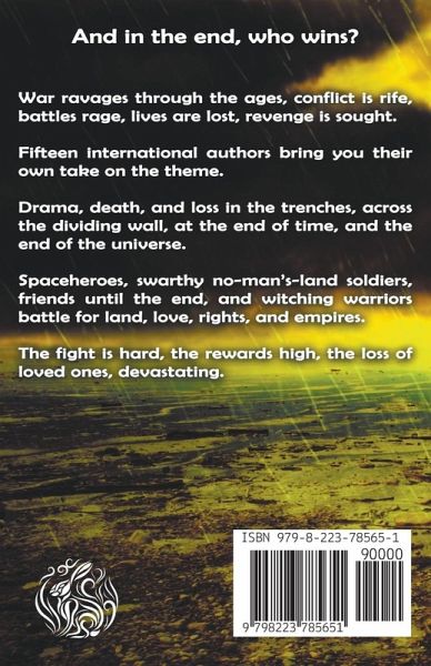 War ravages through the ages, conflict is rife, battles rage, lives are lost, revenge is sought. Fifteen international authors bring you their own take on the theme. Drama, death, and loss in the trenches, across the dividing wall, at the end of time, and the end of the universe. Geriatric space heroes, swarthy no-man's-land soldiers, friends until the end, and witching warriors battle for land, love, rights, and empires. The fight is hard, the rewards high, the loss of loved ones, devastating. And in the end, who wins?