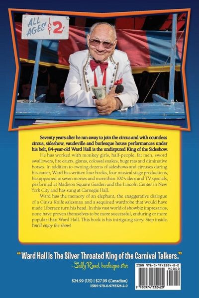 Ward Hall ran across town and joined the circus for a part time gig in 1944 when he was a "kid" living in Colorado. A year later, as a 15 year old 10th grade dropout, he ran away for good, joining the Dailey Bros. Circus. He never looked back. By 16 he was performing in a sideshow and by age 21, he owned a sideshow! Today, 70 years later and countless circus and side show, vaudeville and burlesque house performances under his belt, Ward Hall is still in the business. Ward has worked with a monkey girl, a half-lady/half man, numerous fat men, countless sword swallowers, fire eaters, several giants, big snakes, big rats and little horses. He has mastered juggling, ventriloquism and the art of enticing thousands of curious onlookers to part with their money and go inside the tent of his world-famous sideshows. Ward has owned and operated sideshows, animal shows, magic shows, and illusion shows with such fashionable names as Magic on Parade; Wondercade: Aquarama water circus; Gladiators vs. Mankillers wild animal show; World Attractions; Sky High Circus; the Wonder Circus; the Pygmy Village; and the World of Wonders. He has exhibited the World's smallest woman, the World's tallest giant, and employed Pete Terhune, the mighty fire-eating dwarf for 55 years. In addition to owning or co-owning sideshows and circuses during his career, Ward has written four books, four musical stage productions, been in seven movies and more than 100 videos and TV specials, performed at Madison Square Garden and the Lincoln Center in New York City and has sung at Carnegie Hall. He is in the Hall of Fame of both the Outdoor Amusement Business Assoc. and the International Independent Showmen's Assoc. and is a member of the prestigious Circus Ring of Fame in Sarasota, Fla. Ward is the only person in all three of those halls of honor. Ward has operated the sideshow for many big time circuses, including: Ringling Bros. and Barnum & Bailey Circus, the Toby Tyler Circus, the Al G. Miller Circus, Circus Vargas (where he was part owner of the circus for a while), Beatty Cole, and the E.K. Fernandez Circus. Ward Hall's title of King of the Sideshows is not a new or recent act of coronation, and as the ruler of his own little world of misfits and human anomalies, Ward's title isn't self-awarded, but is a judgment rendered by his peers. The year 2014 is the King's 70th year anniversary in show business. This is his story.