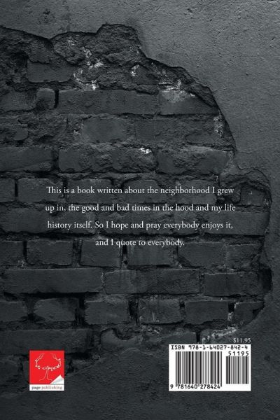 This is a book written about the neighborhood I grew up in, the good and bad times in the hood and my life history itself. So I hope and pray everybody enjoys it, and I quote to everybody.