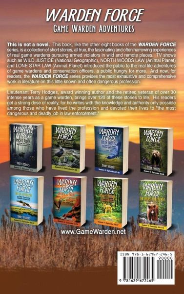 This is not a novel. The WARDEN FORCE series is a collection of short stories, all true adventures of the finest protectors of wildlife in the world. Game wardens, or conservation officers as they're known in some states, have been the subject of an explosion of interest during the past few years. The WARDEN FORCE series is a collection of short stories, all true adventures of the finest protectors of wildlife in the world. TV shows such as JOE PICKETT (Paramount+), WILD JUSTICE (National Geographic), NORTH WOODS LAW (Animal Planet), LONE STAR LAW (Animal Planet) have introduced the public to this dangerous and little known profession, and left them hungry for more. Award winning author Terry Hodges was himself a California State Fish and Game warden and supervisor/leader of game wardens for over 30 intense years. He writes with the authority possible only by those who have actually lived the life, who have actually packed a badge and a gun on behalf of wildlife and battled all manner of wildlife-destroying outlaws. A collection of 13 award-winning short stories (true crime/narrative non-fiction) concerning the true adventures of California Fish and Game Wardens and the wildlife-destroying outlaws they pursue. These stories illustrate the wide variety of wildlife-related problems wardens face in California, which has a greater diversity of wildlife and wildlife habitat than any other state and is second only to Alaska in its vast expanses of wilderness. Bonus: Contains a full-length audio narration of Combat Fishing (Story #9) The eighth season contains 13 exciting true-story narrative adventures:A Matter of Survival: A warden's worst fear nearly comes true. Some Kind of No Good: A warden's exceptional skill and some blind luck combine for an interesting outcome. Payback Time: The vengeful victim of a childhood bully retaliates years later, his revenge spectacular. Drop-Countin' at Gunner's Swamp: A long-retired warden helps two employed wardens make an important duck overlimit case. Threats and Promises: A search warrant search of the home of two deer poachers yields surprises, plus a brush with a bad cop. An Extra Set of Eyes: An aging game warden lieutenant, a few days following knee surgery, ends up being far more than an observer during the action-packed, nighttime arrest of salmon poachers. Operation High Hog: A large team of wardens pit their wits against some of the worst deer and pig poachers in California history. Primal Instincts: Wardens pursue the puzzling case of two deer poachers who kill far more deer than they could ever use. Combat Fishing: An old warden, his days of foot-chases far behind him, employs stealth and trickery to capture two fleet-footed young salmon poachers. Masters of Destruction: A fearless and horribly destructive ATV-riding deer poacher repeatedly evades wardens and officers of other agencies before finally going down hard. The Ghosts of Tipper Slough: A wealthy farmer pays far more than money when he ignores a warden and destroys a particularly wonderful wetland. Leonard's Bad Word: Does a warden known for never using profanity have a slip-up over his radio one dark night? Trophy Poacher: A disturbing, physically imposing, trophy-hunting poacher and a monster wildfire put wardens to the test.