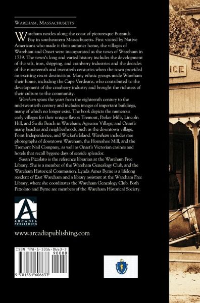 Wareham nestles along the coast of picturesque Buzzards Bay in southeastern Massachusetts. First visited by Native Americans who made it their summer home, the villages of Wareham and Onset were incorporated as the town of Wareham in 1739. The town's long and varied history includes the development of the salt, iron, shipping, and cranberry industries and the decades of the nineteenth and twentieth centuries when the town provided an exciting resort destination. Many ethnic groups made Wareham their home, including the Cape Verdeans, who contributed to the development of the cranberry industry and brought the richness of their culture to the community. Wareham spans the years from the eighteenth century to the mid-twentieth century and includes images of important buildings, many of which no longer exist. The book depicts the numerous early villages for their unique flavor: Tremont, Parker Mills, Lincoln Hill, and Swifts Beach in Wareham; Agawam Village; and Onset's many beaches and neighborhoods, such as the downtown village, Point Independence, and Wicket's Island. Wareham includes rare photographs of downtown Wareham, the Horseshoe Mill, and the Tremont Nail Company, as well as Onset's Victorian casinos and hotels that recall bygone days of seaside splendor.