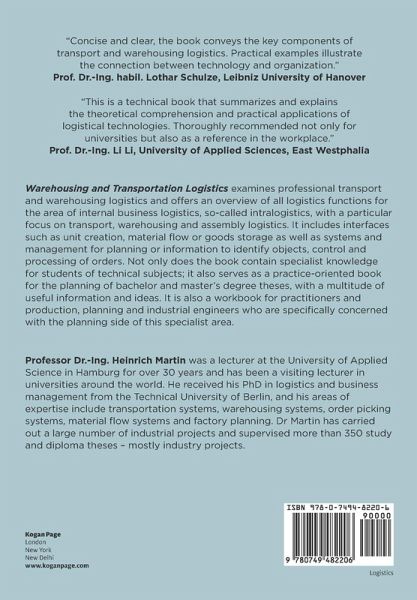Warehousing and Transportation Logistics looks at unit creation, material flow or goods storage as well as systems and management for planning or information to identify objects, control and processing of orders. It is a practice-oriented book for students with a multitude of useful information and ideas. It is also a workbook for professional practitioners, production, planning and industrial engineers, who are specifically concerned with the planning side of this specialist area. The examples at the end ofeach chapter deepen and complement the content and there are comprehensive notes with each figure providing additional information on the topic.