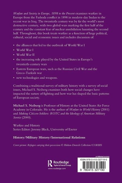 Warfare and Society in Europe, 1898 to the Present examines warfare in Europe from the Fashoda conflict in modern-day Sudan to the recent war in Iraq. The twentieth century was by far the world's most destructive century with two global wars marking the first half of the century and the constant fear of nuclear annihilation haunting the second half. Throughout, this book treats warfare as a function of larger political, cultural, social and economic issues and includes discussion of: * the alliances that led to the outbreak of the First World War * the First World War * the Second World War * the increasing role played by the United States in Europe's twentieth century wars * Eastern European wars such as the Russian Civil War and the Greco-Turkish war * new technologies and weapons. Combining a traditional survey of military history with a survey of social issues, Michael S. Neiberg both examines how social changes have impacted the nature of war fighting and how war has shaped the basic patterns of European society.