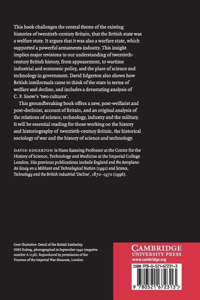 A challenge to the central theme of the existing histories of twentieth-century Britain, that the British state was a welfare state, this book argues that it was also a warfare state, which supported a powerful armaments industry. This insight implies major revisions to our understanding of twentieth-century British history, from appeasement, to wartime industrial and economic policy, and the place of science and technology in government. David Edgerton also shows how British intellectuals came to think of the state in terms of welfare and decline, and includes a devastating analysis of C. P. Snow's two cultures. This groundbreaking book offers a new, post-welfarist and post-declinist, account of Britain, and an original analysis of the relations of science, technology, industry and the military. It will be essential reading for those working on the history and historiography of twentieth-century Britain, the historical sociology of war and the history of science and technology.