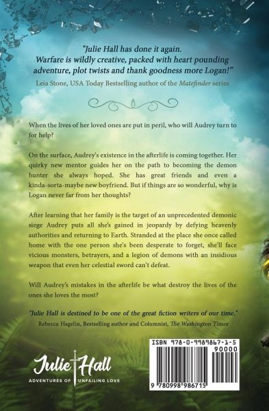 *** Winner of the 2018 Realm Makers Alliance Award (Reader's Choice) *** The battle is far from over. When the lives of her loved ones are put in peril, who will Audrey turn to for help? On the surface, Audrey's existence in the afterlife is coming together. Her quirky new mentor guides her on the path to becoming the demon hunter she always hoped. She has great friends and even a kinda-sorta-maybe new boyfriend. But if things are so wonderful, why is Logan never far from her thoughts? After learning that her family is the target of an unprecedented demonic siege Audrey puts all she's gained in jeopardy by defying heavenly authorities and returning to Earth. Stranded at the place she once called home with the one person she's been desperate to forget, she'll face vicious monsters, betrayers, and a legion of demons with an insidious weapon that even her celestial sword can't defeat. Will Audrey's mistakes in the afterlife be what destroys the lives of the ones she loves the most? What others are saying: "Warfare is a wildly creative sequel to Huntress packed with heart pounding adventure, plot twists that leave you reeling and thank goodness more Logan!" - Leia Stone, USA Today Bestselling author of the Matefinder series ¿¿¿¿¿ "Julie Hall is destined to be one of the great fiction writers of our time." - Rebecca Hagelin, Bestselling author and columnist with The Washington Times ¿¿¿¿¿ The LIFE AFTER SERIES is now complete: Book 1: Huntress (multi-award winner) Book 2: Warfare Book 2.5: Logan (A Companion Story) Book 3: Dominion Genre: Teen and Young Adult Christian Fantasy and Paranormal