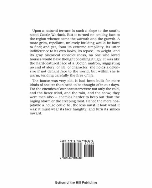 Upon a natural terrace in such a slope to the south, stood Castle Warlock. But it turned no smiling face to the region whence came the warmth and the growth. A more grim, repellant, unlovely building would be hard to find; and yet, from its extreme simplicity, its utter indifference to its own looks, its repose, its weight, and its gray historical consciousness, no one who loved houses would have thought of calling it ugly. It was like the hard-featured face of a Scotch matron, suggesting no end of story, of life, of character: she holds a defensive if not defiant face to the world, but within she is warm, tending carefully the fires of life. The house was very old. It had been built for more kinds of shelter than need to be thought of in our days. For the enemies of our ancestors were not only the cold, and the fierce wind, and the rain, and the snow; they were men also -- enemies harder to keep out than the raging storm or the creeping frost. Hence the more hospitable a house could be, the less must it look what it was: it must wear its face haughty, and turn its smiles inward.