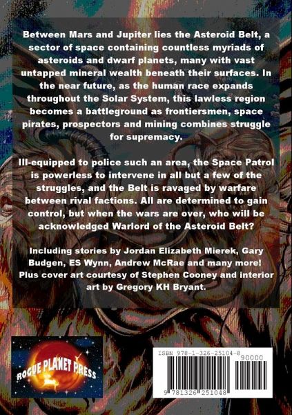 Between Mars and Jupiter lies the Asteroid Belt, a sector of space containing countless myriads of asteroids and dwarf planets, many with vast untapped mineral wealth beneath their surfaces. In the near future, as the human race expands throughout the Solar System, this lawless region becomes a battleground as frontiersmen, space pirates, prospectors and mining combines struggle for supremacy. Ill-equipped to police such an area, the Space Patrol is powerless to intervene in all but a few of the struggles, and the Belt is ravaged by warfare between rival factions. All are determined to gain control, but when the wars are over, who will be acknowledged Warlord of the Asteroid Belt? Including stories by Jordan Elizabeth Mierek, Gary Budgen, ES Wynn, Andrew MacRae and many more! Plus cover art courtesy of Stephen Cooney and interior art by Gregory KH Bryant.