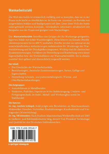 Die Welt des Stahls ist erstaunlich vielfältig und so komplex, dass sie in der Praxis nicht leicht zu überblicken ist. In Form von essentials zu Porträts von ausgewählten Stählen und Stahlgruppen soll dem Leser diese Welt des Stahls nähergebracht werden; kompakt, verständlich, informativ, strukturiert mit Beispielen aus der Praxis und geeignet zum Nachschlagen.
