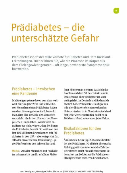 Ihr Gesundheits-Check weist zu hohe Blutzuckerwerte aus und Ihr Arzt will das beobachten? Oder sind bereits die Begriffe Prädiabetes oder beginnender Diabetes gefallen? Dann liegen Sie mit diesem Ratgeber richtig. Denn das 4-Wochenprogramm ermöglicht die Kehrtwende zurück zu einem gesunden Stoffwechsel - ohne die Sorge vor Diabetes. Bereits früh aktiv zu werden lohnt sich! Denn Insulinresistenz und hohe Blutzuckerwerte richten schon frühzeitig massiven Schaden an Nervenzellen und Blutgefäßen an - Herz, Gehirn, Augen und Nieren sind in Gefahr.