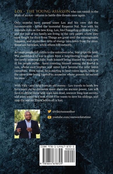 Lox - the young assassin who can vanish in the blink of an eye - returns to battle dire threats once again. Only months have passed since Lox and his crew did the inconceivable - killed the immortal Emperor Nal. Now with his comrade, Jolin as the new King, Lox, his Changeling girlfriend Vida, and the rest of his family are living in the very palace where they once fought for their lives. Things are great until the unimaginable happens, and mysterious orbs of energy rain down from the skies. Some are harmless, while others kill instantly. As more people fall victim to the unknown orbs, fear grips the land. The countdown to war is given from a neighboring kingdom, and the newly-crowned Jolin finds himself being blamed for each new ill his people suffer. Soon counting himself among the fearful is Lox, whose own brother and sister have become the orbs' latest casualties. Even worse, he is starting to hear voices again, while at the same time being hunted by assassins whose powers far exceed his own. With Vida - and help from an old enemy - Lox travels to lands few have seen. As he discovers more about an ancient power, Lox will have to defeat those who want him dead, uncover long-lost secrets, and even travel to a new world if he wants to save his siblings, and stop the war on Thera before all is lost.
