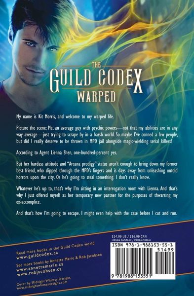 My name is Kit Morris, and welcome to my warped life. Picture the scene: Me, an average guy with psychic powers-not that my abilities are in any way average-just trying to scrape by in a harsh world. So maybe I've conned a few people, but did I really deserve to be thrown in MPD jail alongside magic-wielding serial killers? According to Agent Lienna Shen, one-hundred-percent yes. But her hardass attitude and "Arcana prodigy" status aren't enough to bring down my former best friend, who slipped through the MPD's fingers and is days away from unleashing untold horrors upon the city. Or he's going to steal something. I don't really know. Whatever he's up to, that's why I'm sitting in an interrogation room with Lienna. And that's why I just offered myself as her temporary new partner for the purposes of thwarting my ex-accomplice. And that's how I'm going to escape. I might even help with the case before I cut and run.