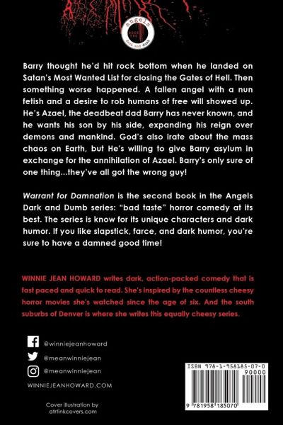 I thought I'd hit rock bottom when I pissed off Satan and ended up on Hell's Most Wanted List. Then something worse happened. A fallen angel with a nun fetish and a desire to rob humans of free will showed up. He's Azael, the deadbeat dad I've never known, and he wants me at his side, expanding his reign over demons and mankind. God's pissed too but willing to give me asylum if I annihilate Azael. What? Me? Destroy a fallen angel? I think they've got the wrong guy! Warrant for Damnation is the second book in the Angels Dark and Dumb series: "bad taste" horror comedy at its best. The series is know for its unique characters and dark humor. If you like slapstick, farce, and dark humor, you're sure to have a damned good time! Note: Angels Dark and Dumb was previously released as The Courier series.