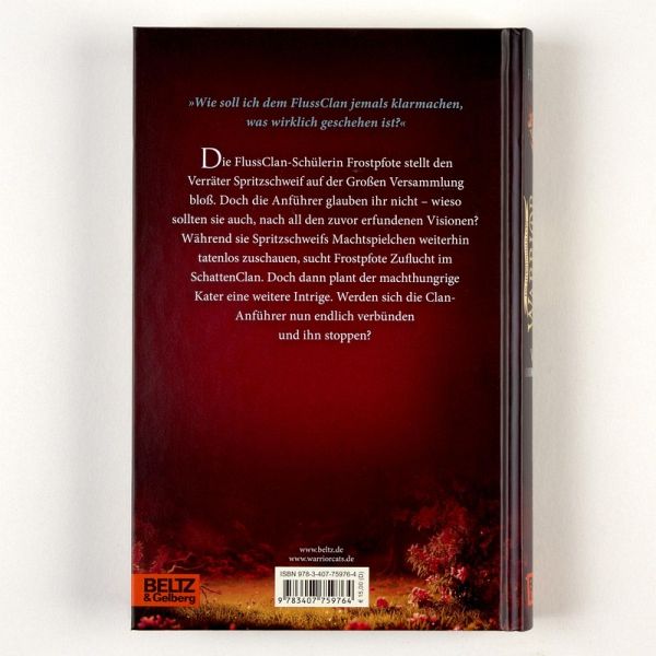 Frostpfote hat es gerade rechtzeitig zurückgeschafft, um den Verräter Spritzschweif vor den Clans bloßzustellen. Doch die Anführer glauben ihr nicht - wieso sollten sie das nach all den zuvor erfundenen Visionen? Enttäuscht sucht die Schülerin eine neue Heimat im SchattenClan. Aber dann plant Beerenherz eine weitere Intrige und Spritzschweif streckt die Krallen nach der Macht aus ... Wer kann die beiden jetzt noch stoppen?