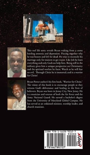 Bryan Porter author's his first book, 'Warrior for Christ' in a series detailing a 20 year journey. The vision for this book is to encourage people as they see God's deliverance and healing in the lives of the readers. For them to believe God's deliverance physically, for their spirits, and families. Bryan was born in Jersey City, New Jersey. He is a musician and veteran of both the Air Force and Army. He has earned a bachelor's degree from the University of Maryland University College and Associates degree in Applied Science. He's earned certificates in: paralegal studies, emergency medical technician (EMT), phlebotomy, and EKG. What Bryan is most proud of is being a Christian who has studied to be a workman, approved unto God. He has served as a ordained minister, worship leader, and church musician. He enjoys friendships regardless of faith, political beliefs, or race.