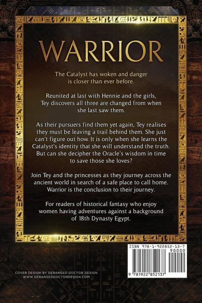 The Catalyst has woken and danger is closer than ever before. Reunited at last with Hennie and the girls, Tey discovers all three are changed from when she last saw them. As their pursuers find them yet again, Tey realises they must be leaving a trail behind them. She just can't figure out how. It is only when she learns the Catalyst's identity that she will understand the truth. But can she decipher the Oracle's wisdom in time to save those she loves? Join Tey and the princesses as they journey across the ancient world in search of a safe place to call home. Warrior provides the conclusion to their journey. For readers of historical fantasy who enjoy women having adventures against a background of 18th Dynasty Egypt.
