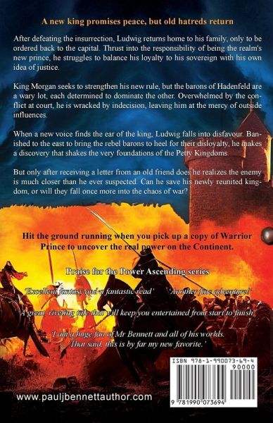 A new king promises peace, but old hatreds return After defeating the insurrection, Ludwig returns home to his family, only to be ordered back to the capital. Thrust into the responsibility of being the realm's new prince, he struggles to balance his loyalty to his sovereign with his own idea of justice. King Morgan seeks to strengthen his new rule, but the barons of Hadenfeld are a wary lot, each determined to dominate the other. Overwhelmed by the conflict at court, he is wracked by indecision, leaving him at the mercy of outside influences. When a new voice finds the ear of the king, Ludwig falls into disfavour. Banished to the east to bring the rebel barons to heel for their disloyalty, he makes a discovery that shakes the very foundations of the Petty Kingdoms. But only after receiving a letter from an old friend does he realize the enemy is much closer than he ever suspected. Can he save his newly reunited kingdom, or will they fall once more into the chaos of war? The story of an emerging leader continues in Paul J Bennett's Warrior Prince, Book Six of the Power Ascending Series. Hit the ground running when you pick up a copy of Warrior Prince to uncover the real power on the Continent. New to the series? Meet Charlaine and Ludwig in Tempered Steel, the series prequel, then crack open a copy of Temple Knight to learn how a leader is forged.