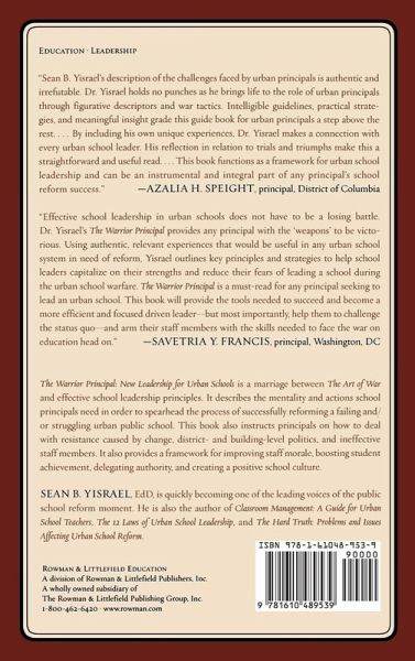 The Warrior Principal: New Leadership for Urban Schools is a marriage between the Art of War and effective school leadership principles. It describes the mentality and actions school principals need in order to spearhead the process of successfully reforming a failing and/or struggling urban public school.