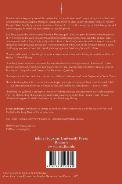 How did warrior nobles' practices of violence shape provincial society and the royal state in early seventeenth-century France? Warrior nobles frequently armed themselves for civil war in southern France during the troubled early seventeenth century. These bellicose nobles' practices of violence shaped provincial society and the royal state in early modern France. The southern French provinces of Guyenne and Languedoc suffered almost continual religious strife and civil conflict between 1598 and 1635, providing an excellent case for investigating the dynamics of early modern civil violence. Warrior Pursuits constructs a cultural history of civil conflict, analyzing in detail how provincial nobles engaged in revolt and civil warfare during this period. Brian Sandberg's extensive archival research on noble families in these provinces reveals that violence continued to be a way of life for many French nobles, challenging previous scholarship that depicts a progressive "civilizing" of noble culture. Sandberg argues that southern French nobles engaged in warrior pursuits--social and cultural practices of violence designed to raise personal military forces and to wage civil warfare in order to advance various political and religious goals. Close relationships between the profession of arms, the bonds of nobility, and the culture of revolt allowed nobles to regard their violent performances as "heroic gestures" and "beautiful warrior acts." Warrior nobles represented the key organizers of civil warfare in the early seventeenth century, orchestrating all aspects of the conduct of civil warfare--from recruitment to combat--according to their own understandings of their warrior pursuits. Building on the work of Arlette Jouanna and other historians of the nobility, Sandberg provides new perspectives on noble culture, state development, and civil warfare in early modern France. French historians and scholars of the Reformation and the European Wars of Religion will find Warrior Pursuits engaging and insightful.
