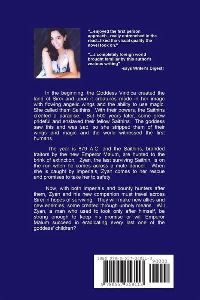 The Goddess Vindica created Saithins in her image with flowing angelic wings and the ability to use magic. Now, over 800 years later, the Saithins are hunted down to the brink of extinction by the humans led by Emperor Malum. The six Kingdoms are at his mercy. Zyan, the last surviving Saithin, is used to only looking after himself but after coming across a mute dancer which he saves from imperials, he is forced into conflict to ensure her safety. Trekking across Sirei, he and his new companion must battle dark enemies and make unexpected allies, all in the hopes of surviving. Will he live long enough to seize the day or will Emperor Malum succeed in eradicating every last one of the goddess' children?