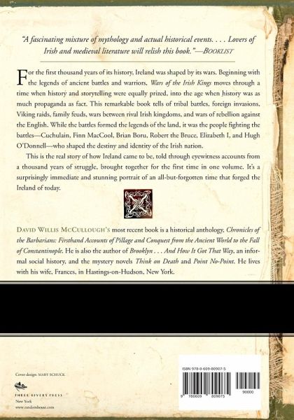 For the first thousand years of its history, Ireland was shaped by its wars. Beginning with the legends of ancient battles and warriors, Wars of the Irish Kings moves through a time when history and storytelling were equally prized, into the age when history was as much propaganda as fact. This remarkable book tells of tribal battles, foreign invasions, Viking raids, family feuds, wars between rival Irish kingdoms, and wars of rebellion against the English. While the battles formed the legends of the land, it was the people fighting the battles—Cuchulain, Finn MacCool, Brian Boru, Robert the Bruce, Elizabeth I, and Hugh O'Donnell—who shaped the destiny and identity of the Irish nation. This is the real story of how Ireland came to be, told through eyewitness accounts from a thousand years of struggle, brought together for the first time in one volume. It's a surprisingly immediate and stunning portrait of an all-but-forgotten time that forged the Ireland of today.