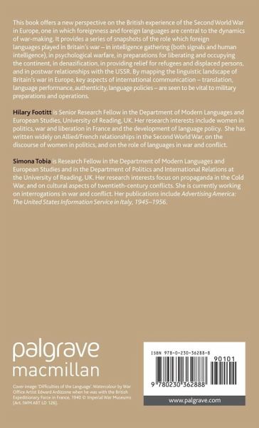 Offering a new perspective on the British experience of the Second World War in Europe, this book provides a series of snapshots of the role which languages played in the key processes of British war-making, moving from frameworks of perception and intelligence gathering, through to liberation/occupation, and on to the aftermath of conflict.