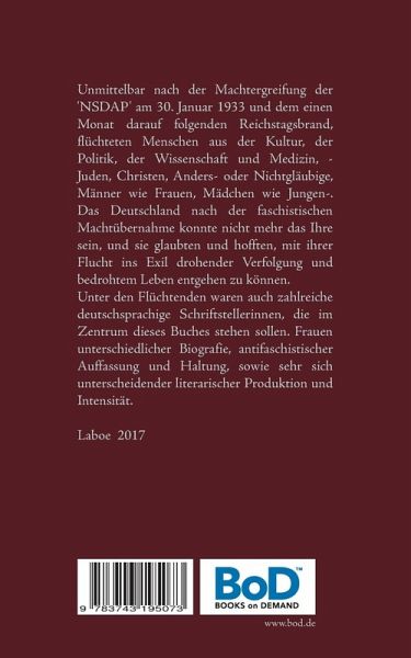 Unmittelbar nach der Machtergreifung der 'NSDAP' am 30. Januar 1933 und dem einen Monat darauf folgenden Reichstagsbrand, flüchteten Menschen aus der Kultur, der Politik, der Wissenschaft und Medizin, Juden, Christen, Anders- oder Nichtgläubige, Männer wie Frauen, Mädchen wie Jungen. Das Deutschland nach der faschistischen Machtübernahme konnte nicht mehr das Ihre sein, und sie glaubten und hofften, mit ihrer Flucht ins Exil drohender Verfolgung und bedrohtem Leben entgehen zu können.Unter den Flüchtenden waren zahlreiche Schriftstellerinnen des deutschen Sprachraumes, die im Zentrum dieses Buches stehen sollen. Frauen unterschiedlicher Biografie, antifaschistischer Haltung sowie sehr sich unterscheidender literarischer Produktion und Intensität.