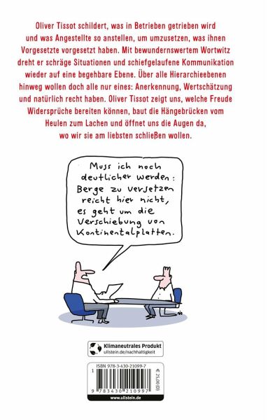 Oliver Tissot ist der Hofnarr des deutschen Unternehmensadels: Wo andere den Finger in die Wunde legen, kitzelt er lieber einen Lacher heraus - bis es wehtut. Seine tiefe Kenntnis der deutschen Wirtschaft, von der höchsten Führungsetage bis in den Materialkeller, macht ihn zu einem einzigartigen Insider. Sein größtes Alleinstellungsmerkmal aber ist sein Wortwitz: Mit Lachverstand schildert Tissot, was in Betrieben getrieben wird und was Angestellte so anstellen, um umzusetzen, was ihnen Vorgesetzte vorgesetzt haben. Vieles, was Werktätigen an Wahnsinn widerfährt, bekommt durch Tissots Blick eine neue Perspektive, manchmal auch eine zweite Bedeutung. Ob Kommunikation didaktisch, faktisch, kritisch, idiotisch oder richtig schiefläuft: Im Kern geht es immer um Wertschätzung. Mit Humor kann Oliver Tissot aussprechen (und schreiben), was andere nur denken.